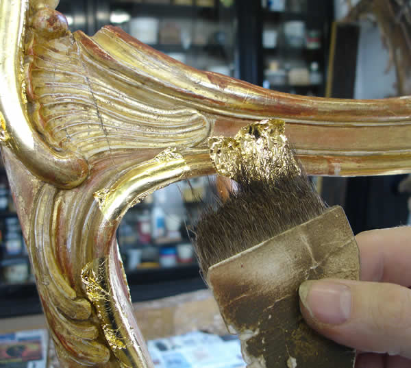 Application of gold leaf to carvings
